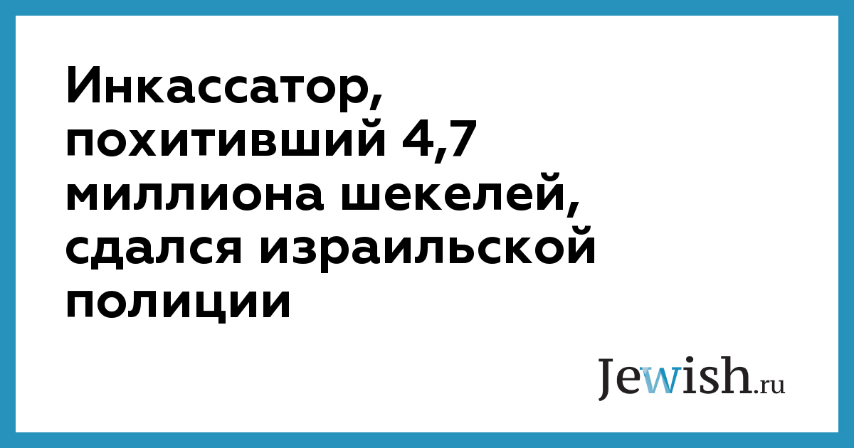 Инкассатор, похитивший 4,7 миллиона шекелей, сдался израильской полиции
