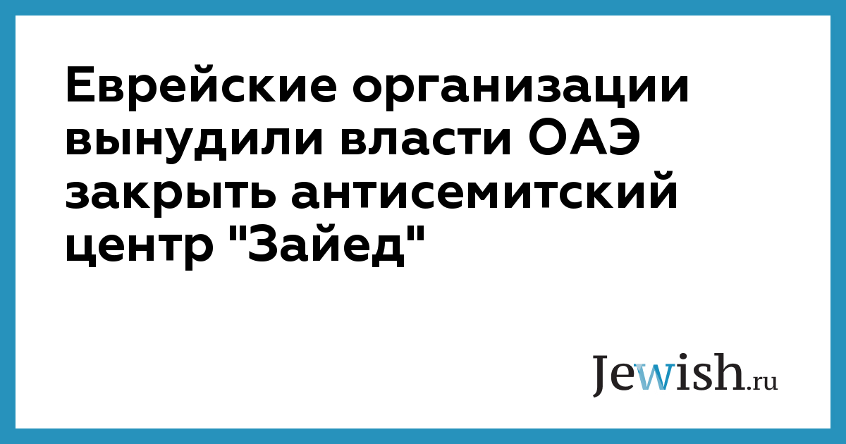Еврейские организации вынудили власти ОАЭ закрыть антисемитский центр "Зайед"