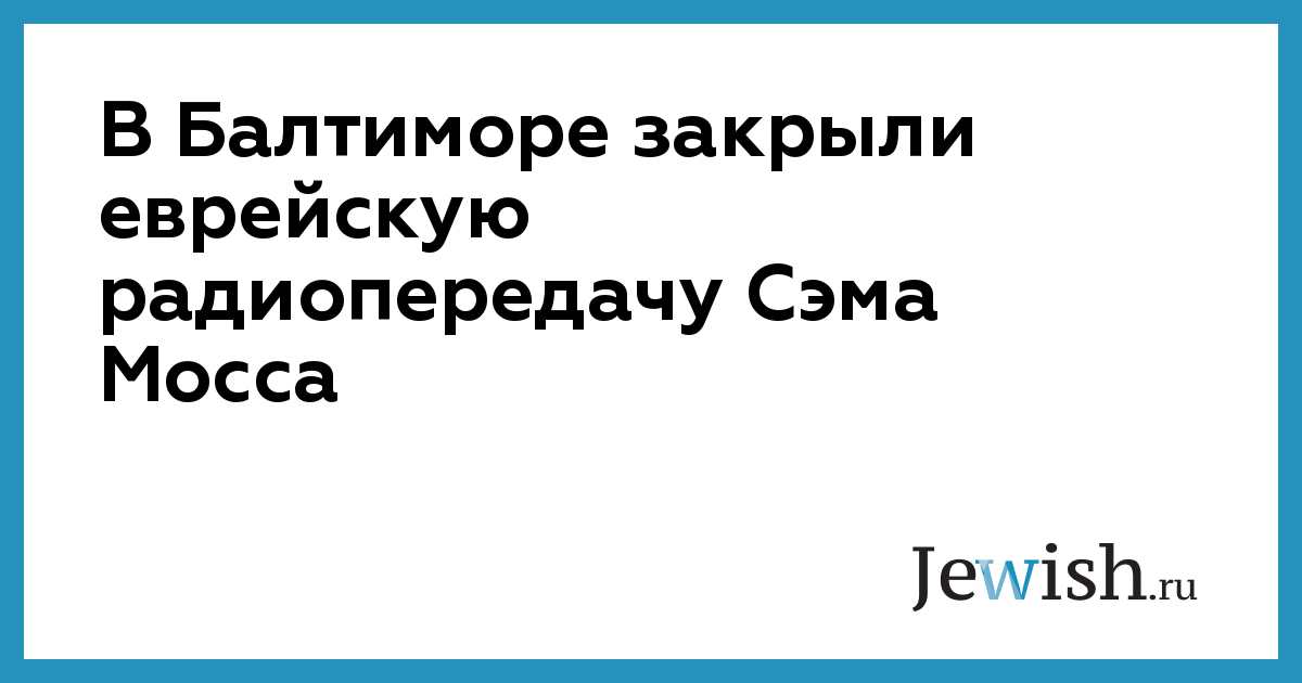 В Балтиморе закрыли еврейскую радиопередачу Сэма Мосса