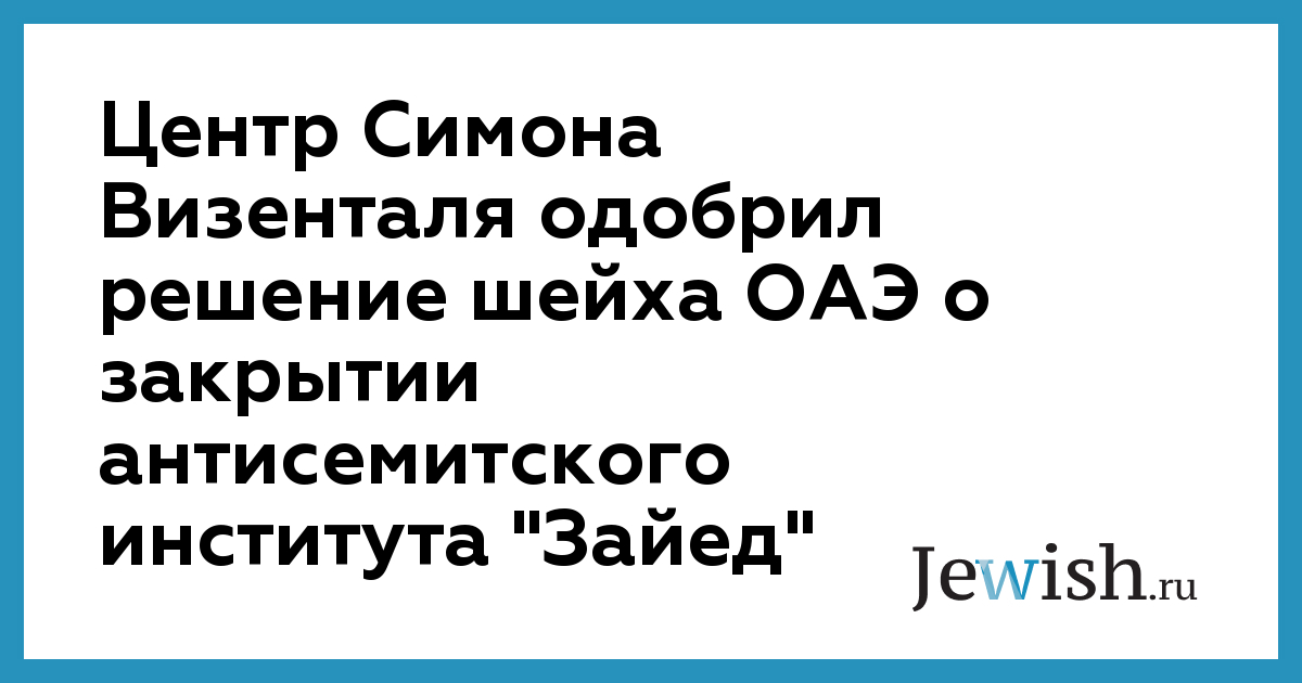 Центр Симона Визенталя одобрил решение шейха ОАЭ о закрытии антисемитского института "Зайед"