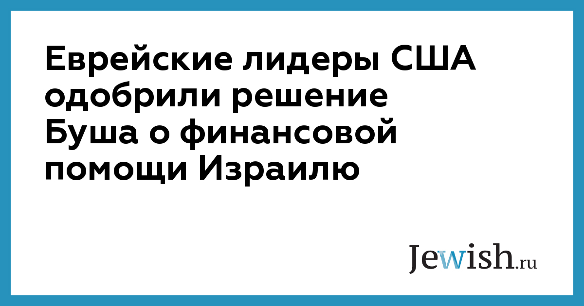 Еврейские лидеры США одобрили решение Буша о финансовой помощи Израилю