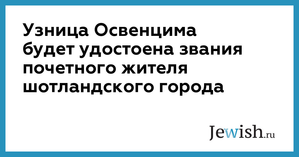 Узница Освенцима будет удостоена звания почетного жителя шотландского города