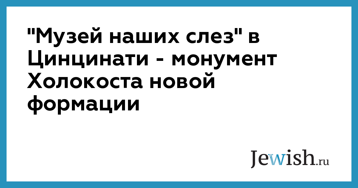 "Музей наших слез" в Цинцинати — монумент Холокоста новой формации