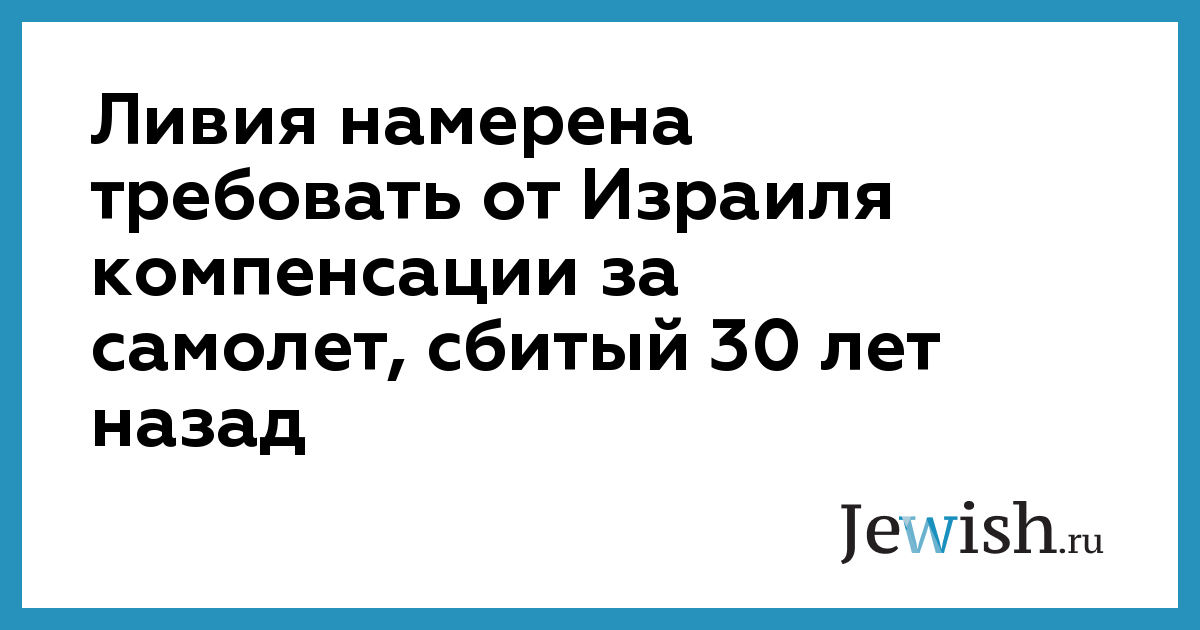 Размер запрашиваемой компенсации такой же, как в случае взрыва самолета над шотландским городом Локерби – по 10 миллионов за каждого пассажира. Ливийский самолет был сбит израильскими средствами ПВО над Синаем после того, как он не отвечал на запросы и предупреждения.