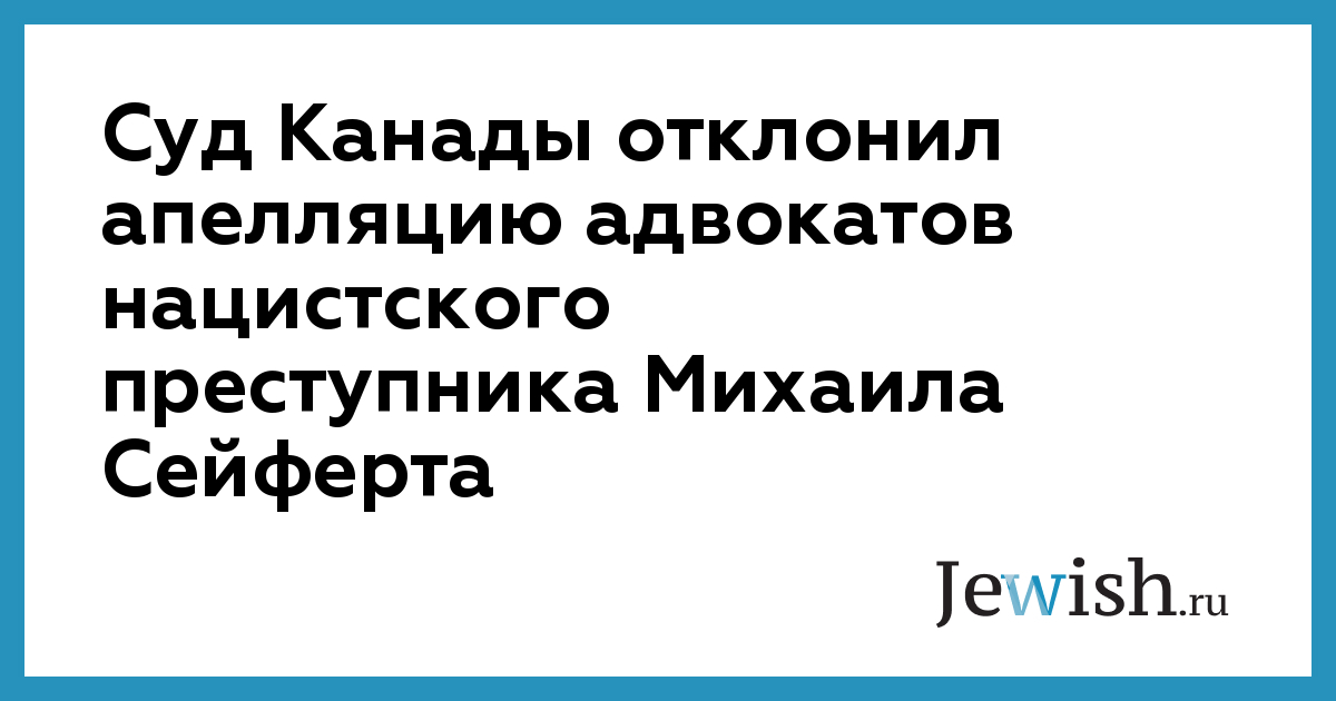 Суд Канады отклонил апелляцию адвокатов нацистского преступника Михаила Сейферта