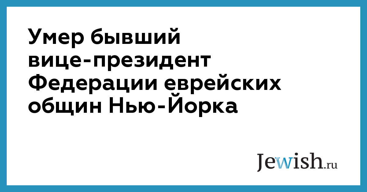 Умер бывший вице-президент Федерации еврейских общин Нью-Йорка