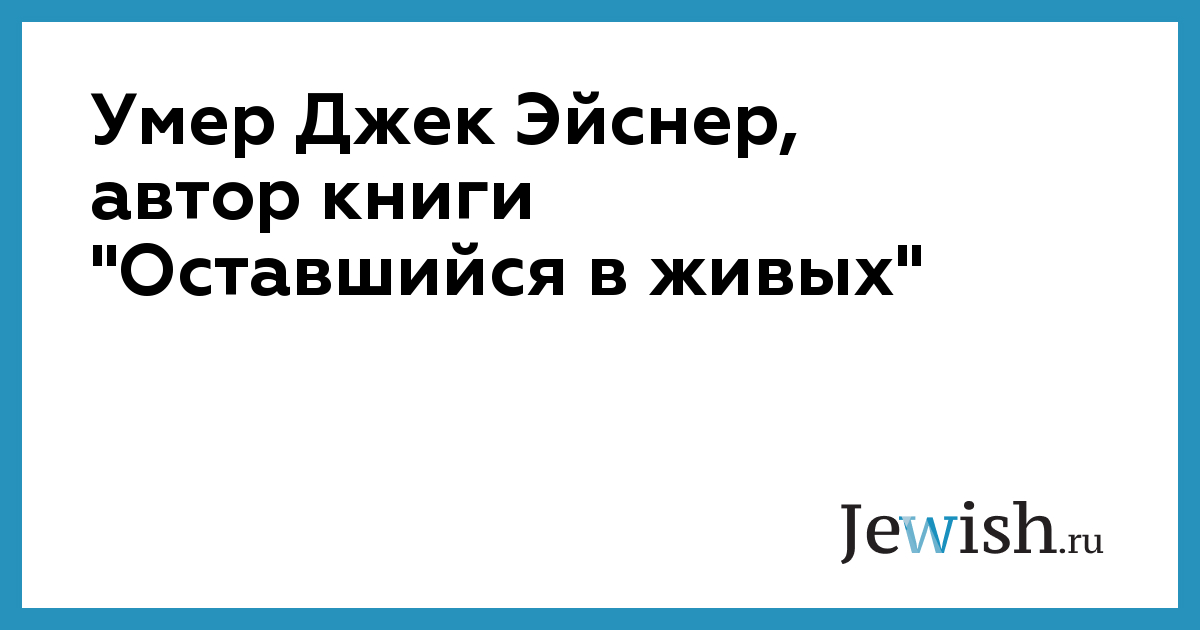 Умер Джек Эйснер, автор книги "Оставшийся в живых"