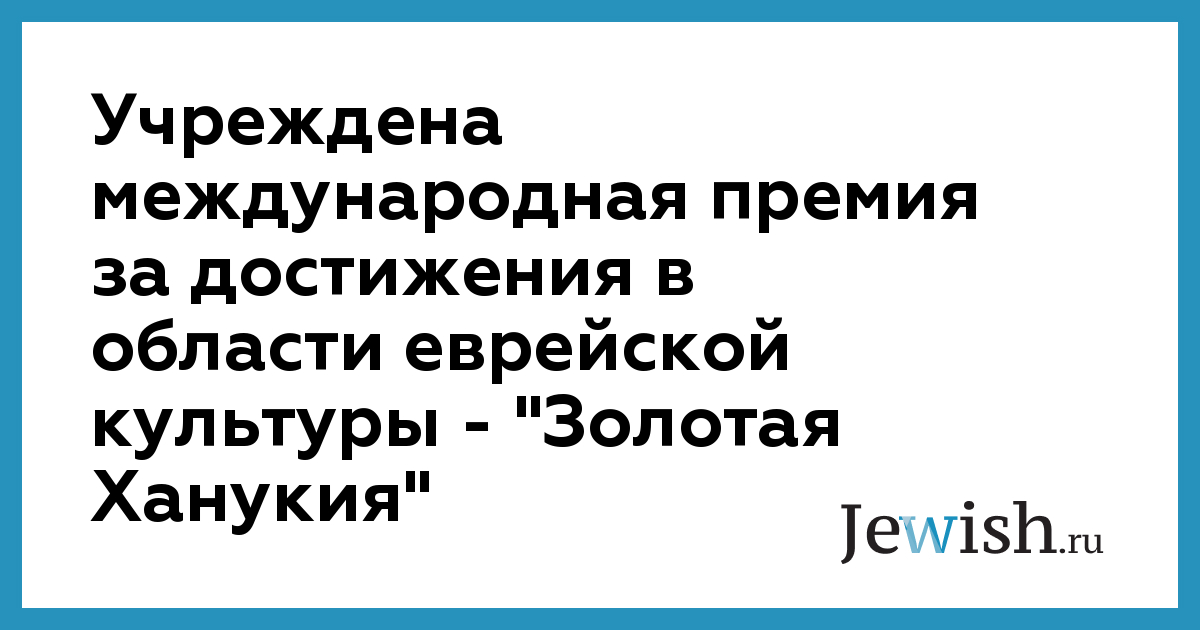 Учреждена международная премия за достижения в области еврейской культуры — "Золотая Ханукия"