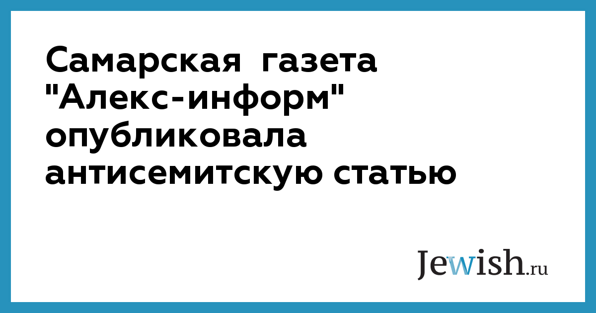 Самарская газета "Алекс-информ" опубликовала антисемитскую статью