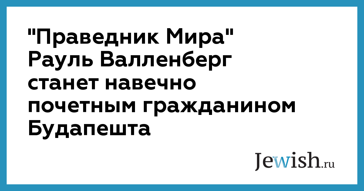 "Праведник Мира" Рауль Валленберг станет навечно почетным гражданином Будапешта