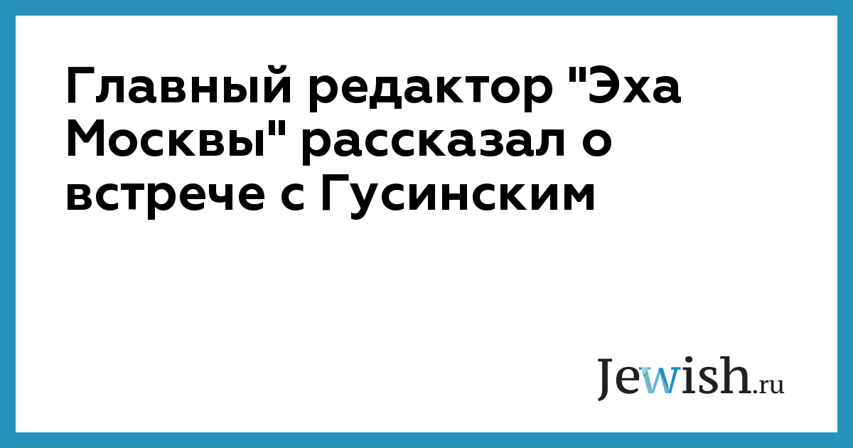 Главный редактор "Эха Москвы" рассказал о встрече с Гусинским
