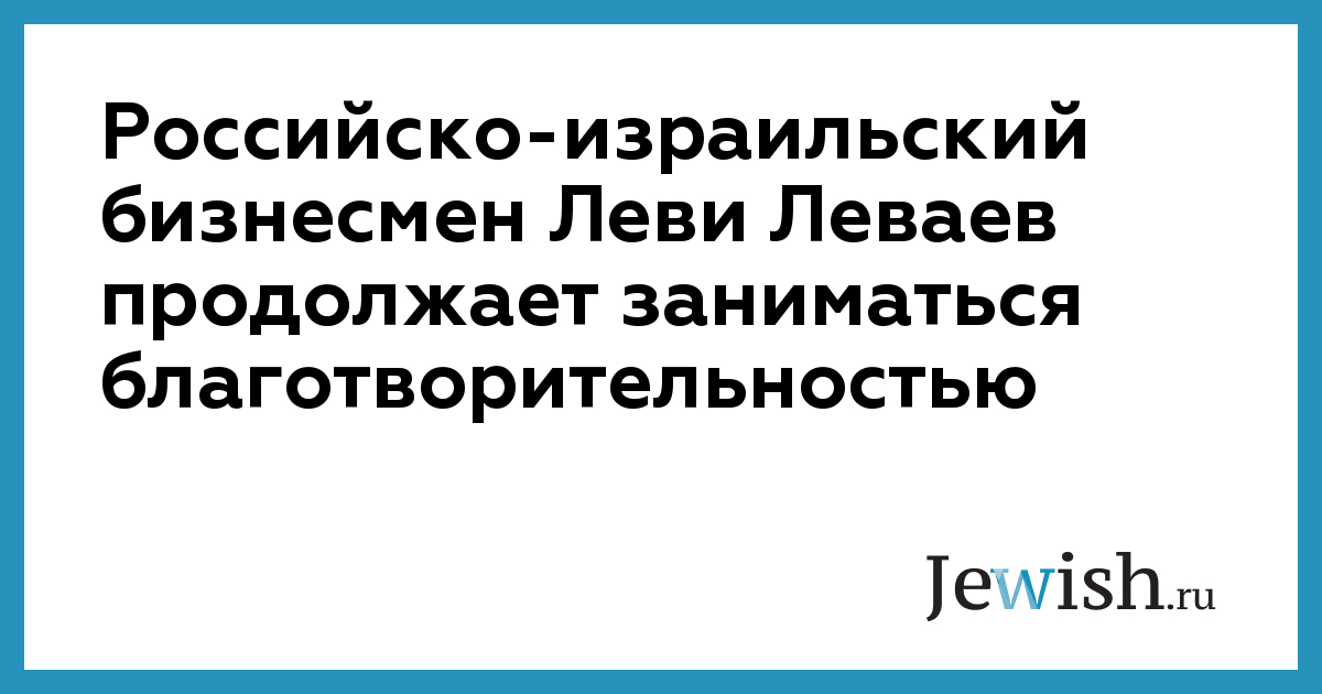 Российско-израильский бизнесмен Леви Леваев продолжает заниматься благотворительностью