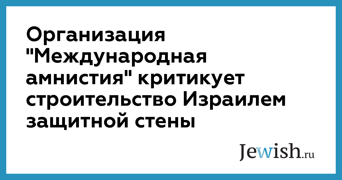 Организация "Международная амнистия" критикует строительство Израилем защитной стены