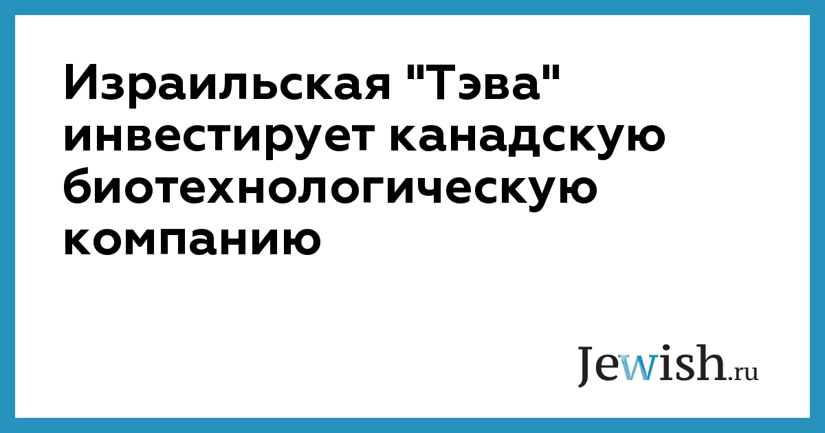 Израильская "Тэва" инвестирует канадскую биотехнологическую компанию