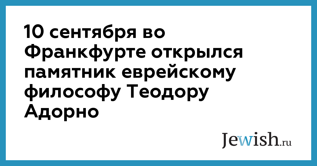 10 сентября во Франкфурте открылся памятник еврейскому философу Теодору Адорно