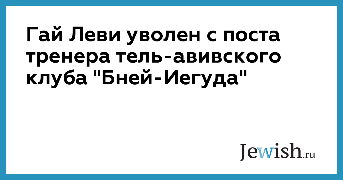 Гай Леви уволен с поста тренера тель-авивского клуба "Бней-Иегуда"