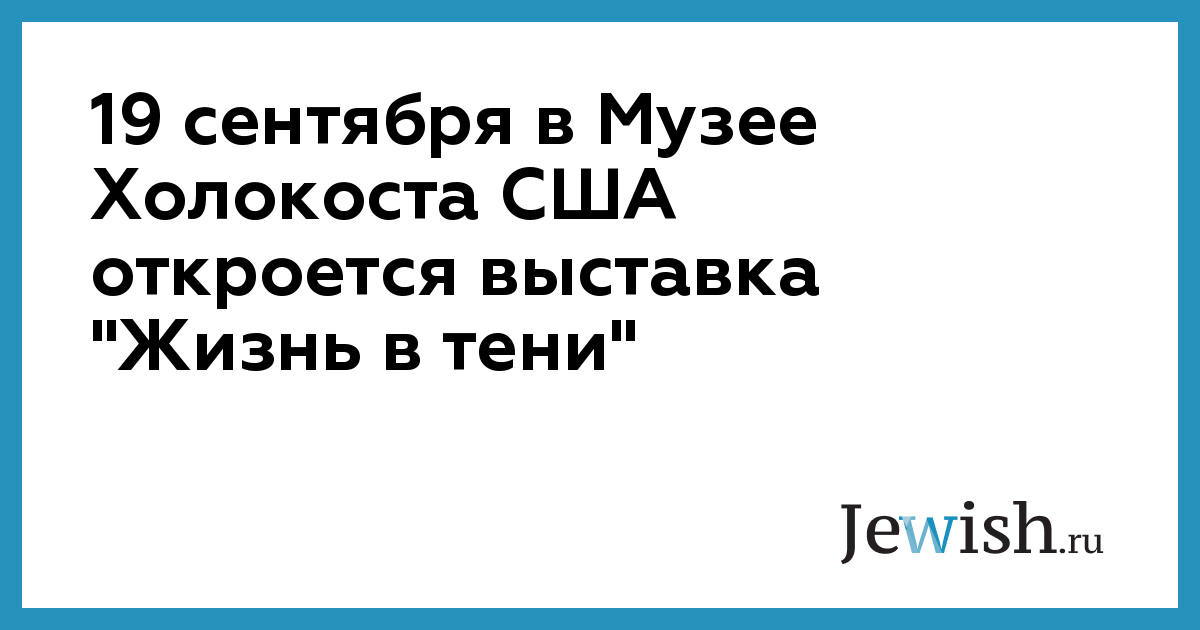19 сентября в Музее Холокоста США откроется выставка "Жизнь в тени"