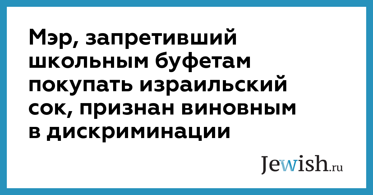 Мэр, запретивший школьным буфетам покупать израильский сок, признан виновным в дискриминации