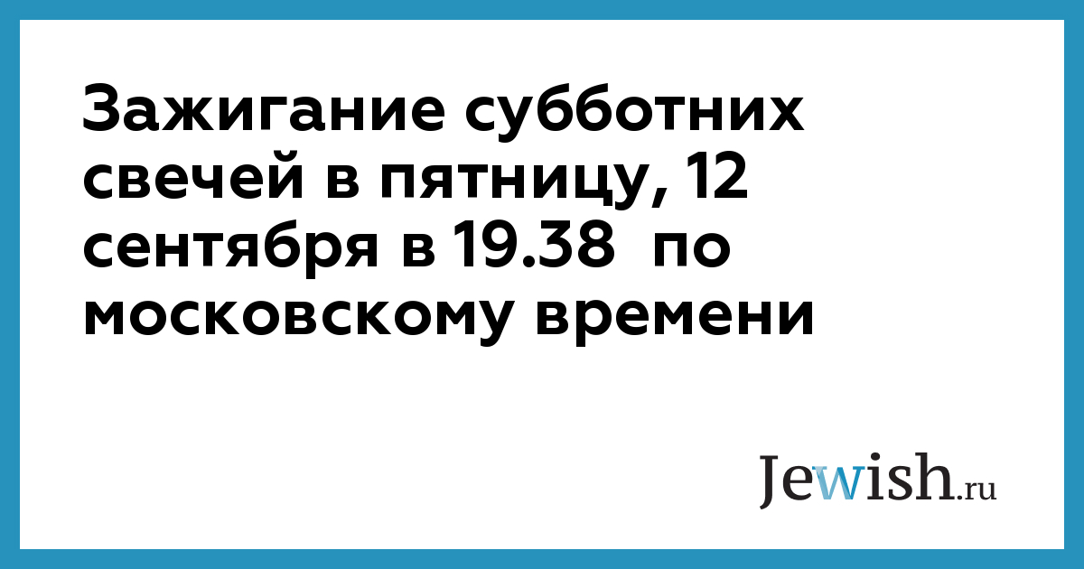 Зажигание субботних свечей в пятницу, 12 сентября в 19.38 по московскому времени