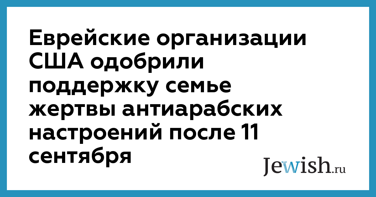 Еврейские организации США одобрили поддержку семье жертвы антиарабских настроений после 11 сентября