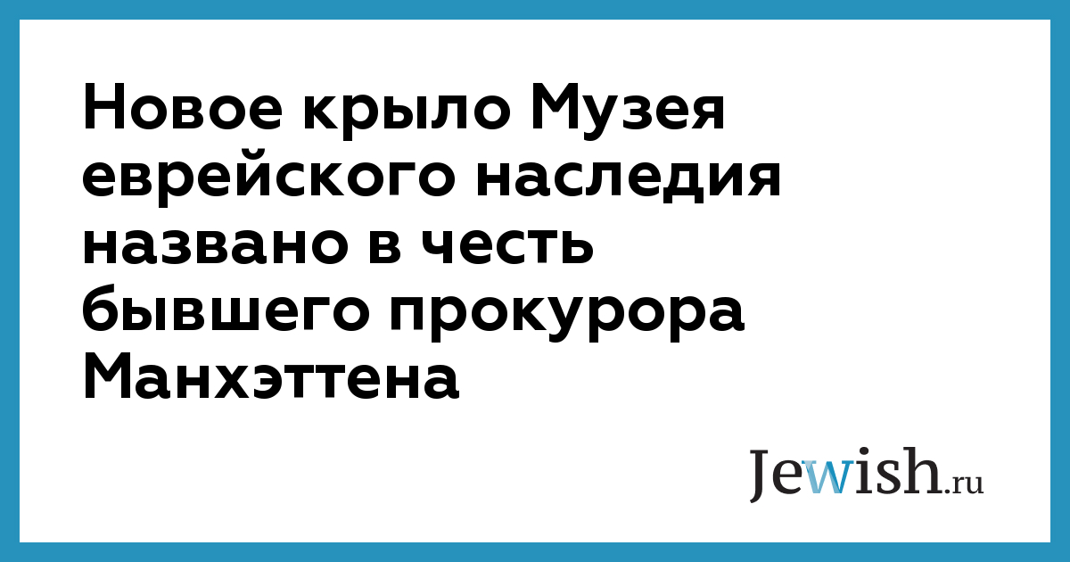 Новое крыло Музея еврейского наследия названо в честь бывшего прокурора Манхэттена