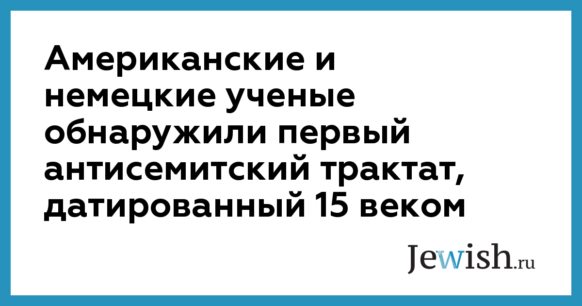 Американские и немецкие ученые обнаружили первый антисемитский трактат, датированный 15 веком