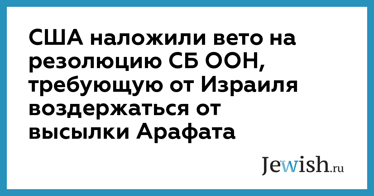 США наложили вето на резолюцию СБ ООН, требующую от Израиля воздержаться от высылки Арафата