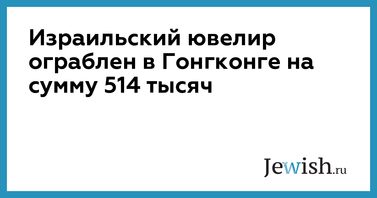 Израильский ювелир ограблен в Гонгконге на сумму 514 тысяч