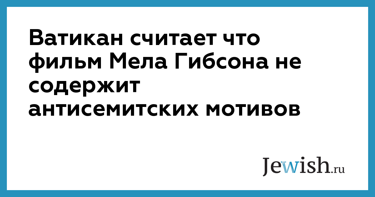 Ватикан считает что фильм Мела Гибсона не содержит антисемитских мотивов