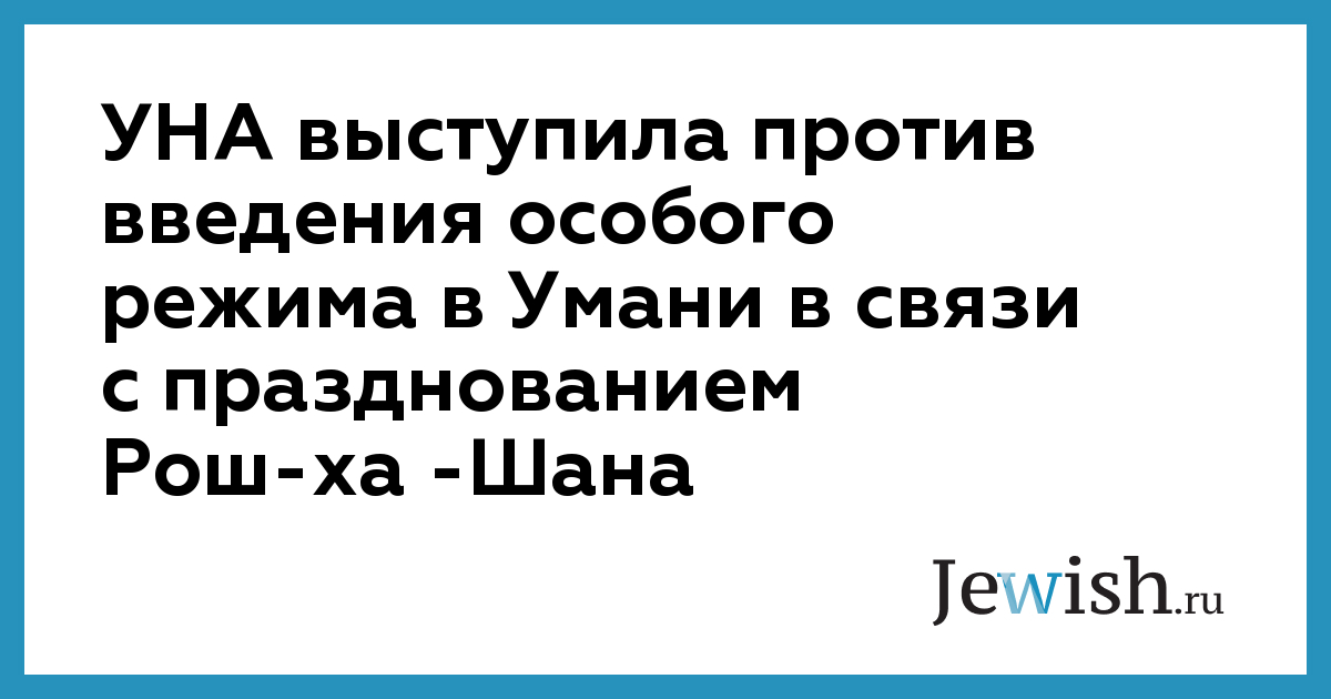 УНА выступила против введения особого режима в Умани в связи с празднованием Рош-ха -Шана