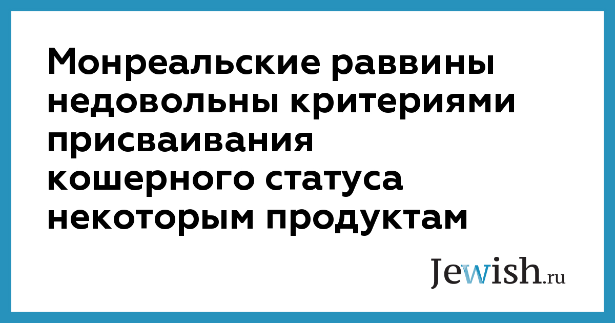 Монреальские раввины недовольны критериями присваивания кошерного статуса некоторым продуктам
