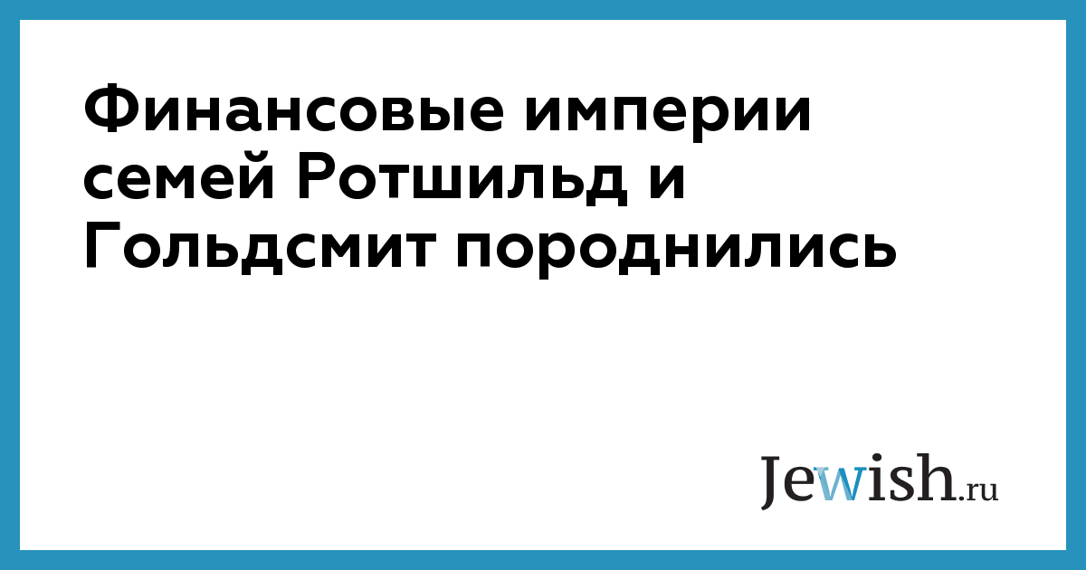 Финансовые империи семей Ротшильд и Гольдсмит породнились