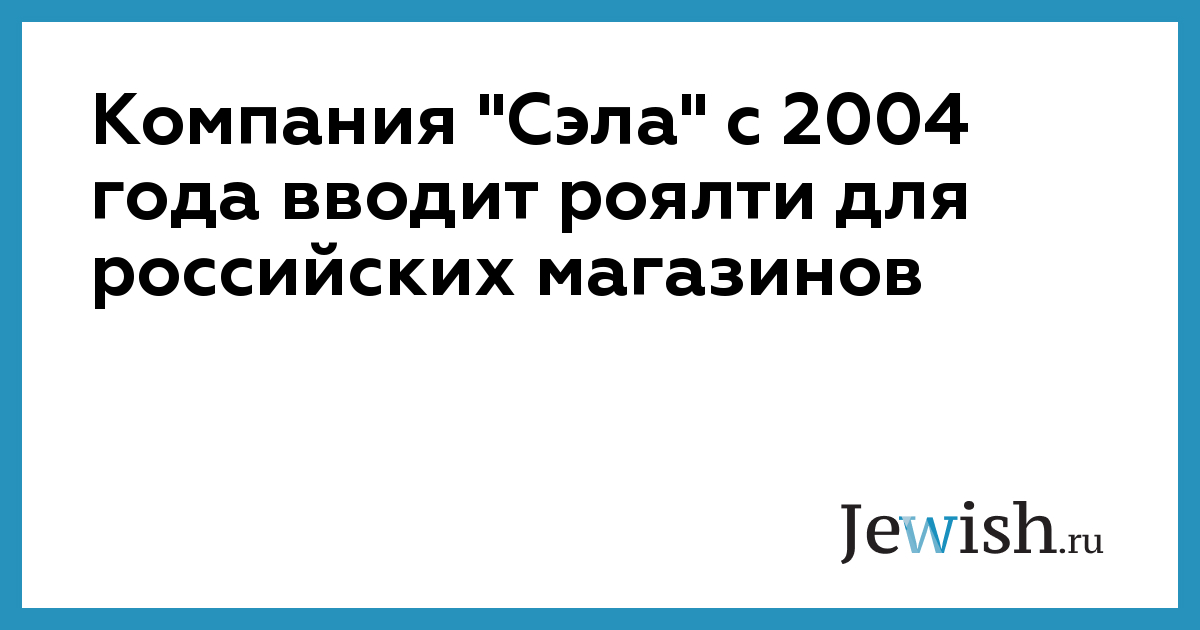 Компания "Сэла" с 2004 года вводит роялти для российских магазинов