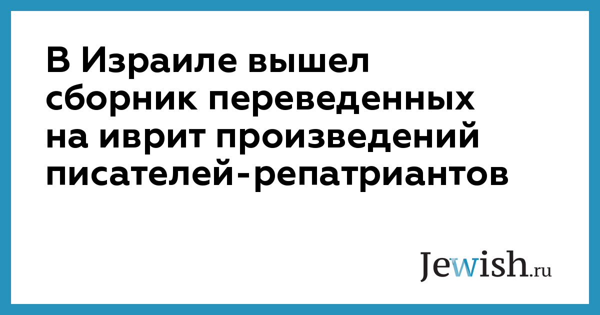 В Израиле вышел сборник переведенных на иврит произведений писателей-репатриантов