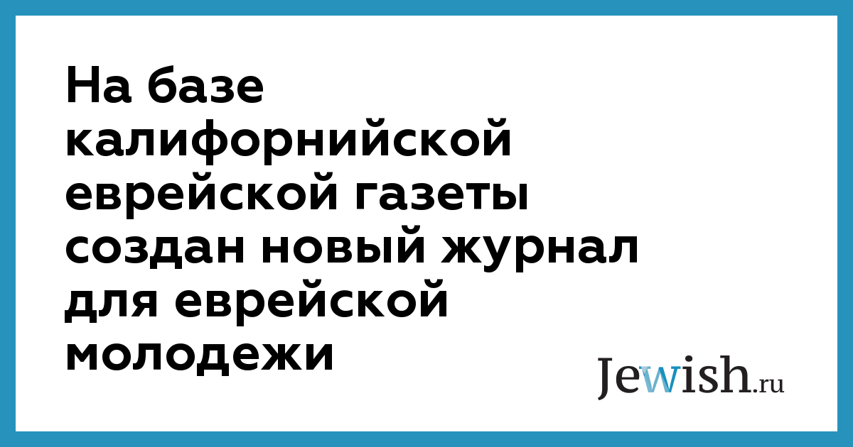 На базе калифорнийской еврейской газеты создан новый журнал для еврейской молодежи