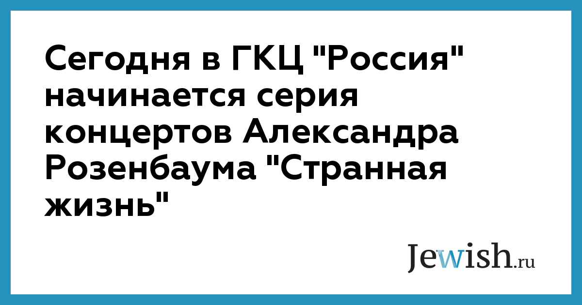 Сегодня в ГКЦ "Россия" начинается серия концертов Александра Розенбаума "Странная жизнь"