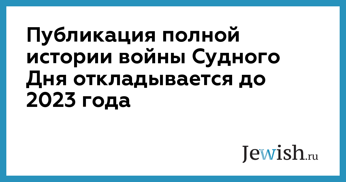 Публикация полной истории войны Судного Дня откладывается до 2023 года