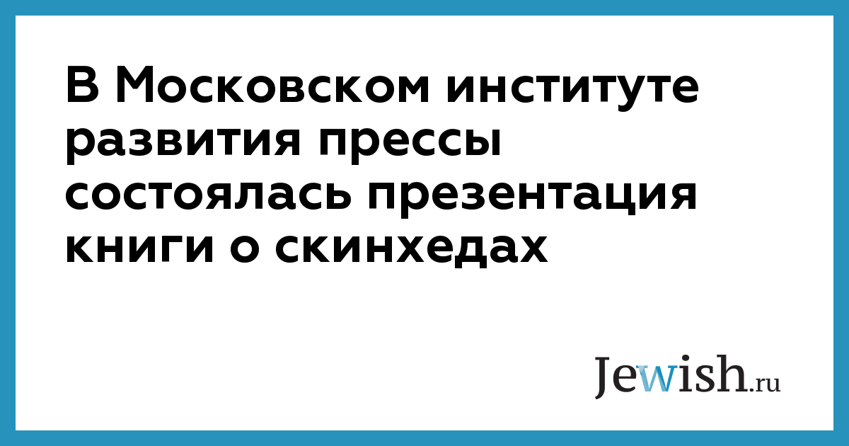В Московском институте развития прессы состоялась презентация книги о скинхедах