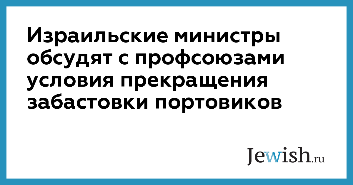 Израильские министры обсудят с профсоюзами условия прекращения забастовки портовиков