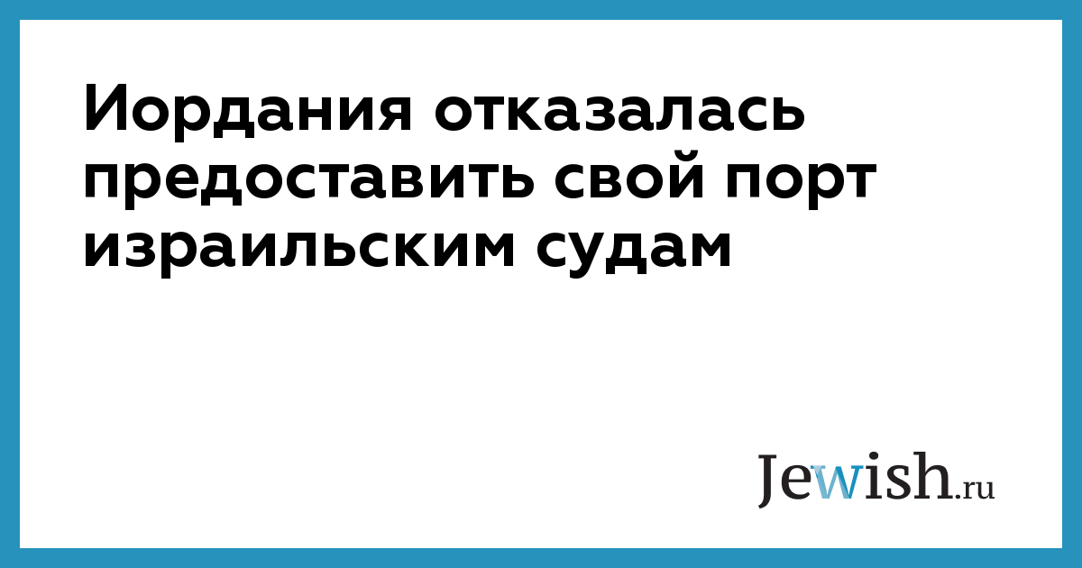 Иордания отказалась предоставить свой порт израильским судам
