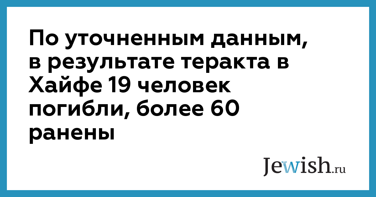 По уточненным данным, в результате теракта в Хайфе 19 человек погибли, более 60 ранены