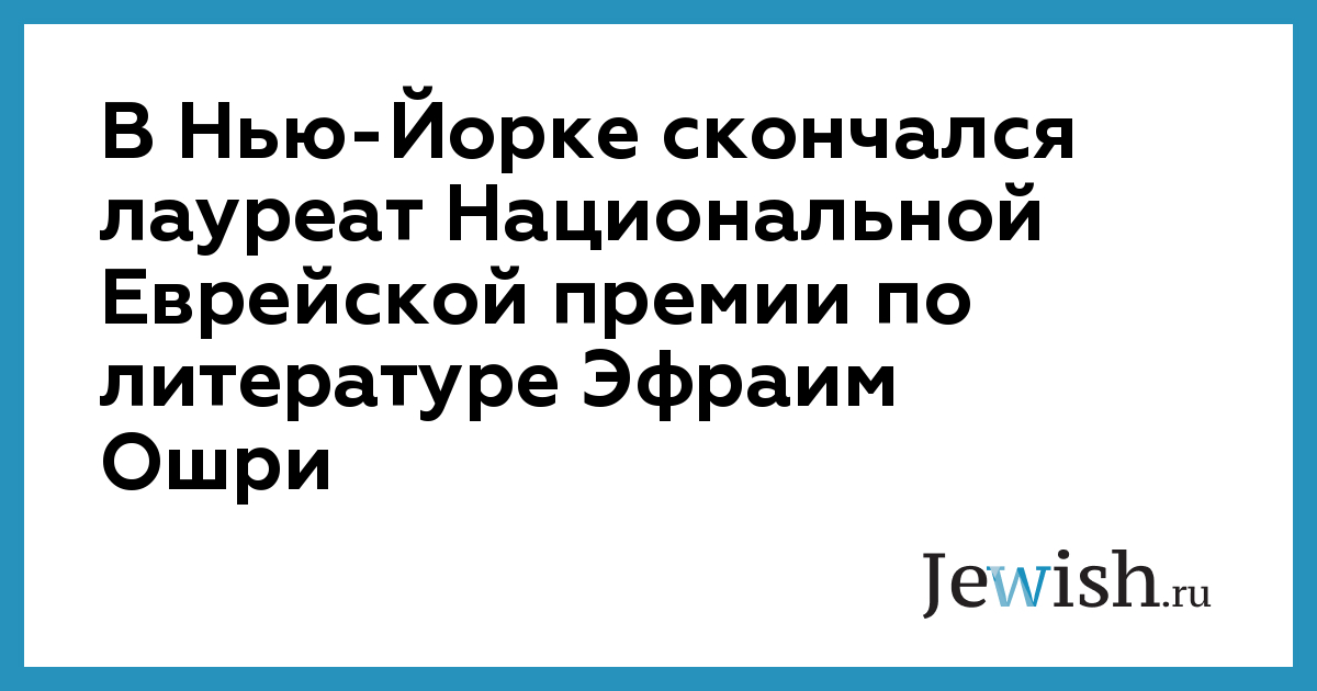 В Нью-Йорке скончался лауреат Национальной Еврейской премии по литературе Эфраим Ошри