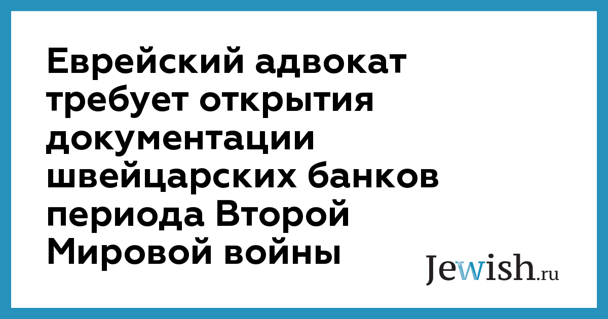 Еврейский адвокат требует открытия документации швейцарских банков периода Второй Мировой войны