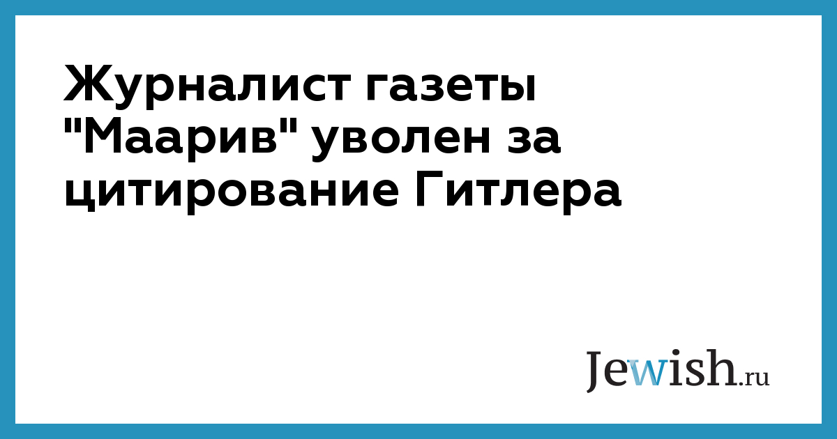Журналист газеты "Маарив" уволен за цитирование Гитлера