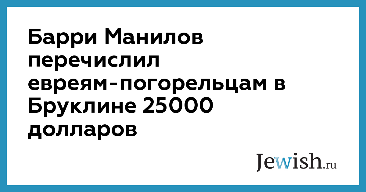 Барри Манилов перечислил евреям-погорельцам в Бруклине 25000 долларов
