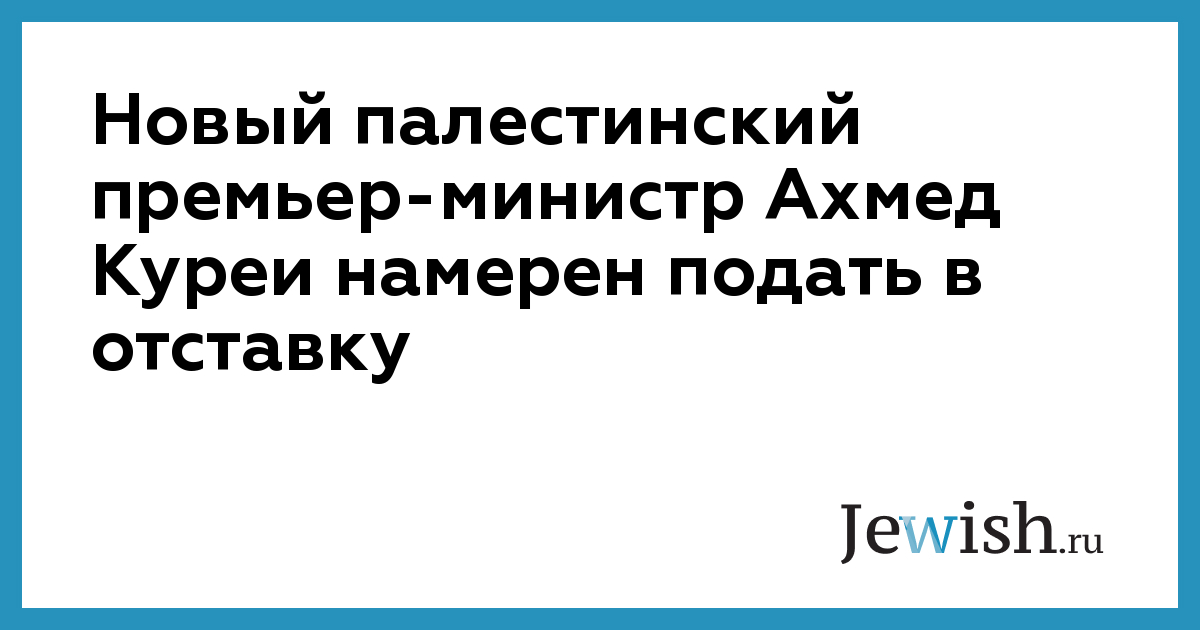 Новый палестинский премьер-министр Ахмед Куреи намерен подать в отставку