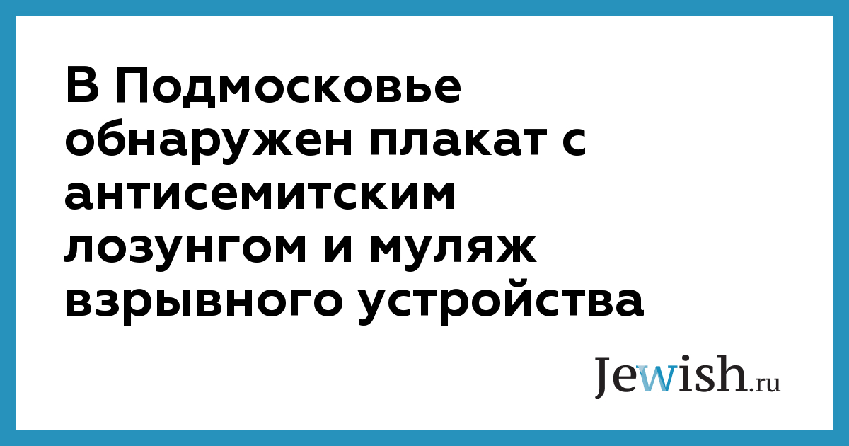 В Подмосковье обнаружен плакат с антисемитским лозунгом и муляж взрывного устройства