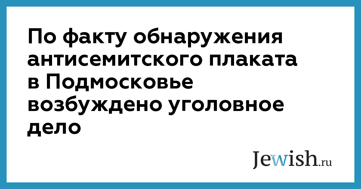 По факту обнаружения антисемитского плаката в Подмосковье возбуждено уголовное дело