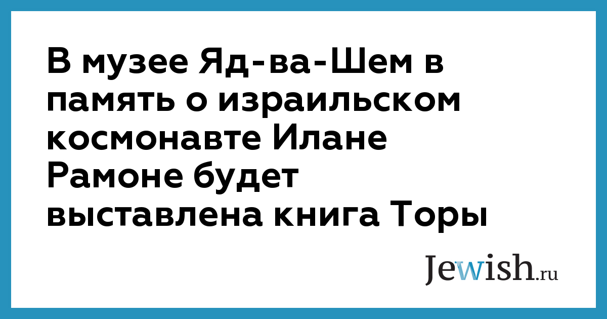 В музее Яд-ва-Шем в память о израильском космонавте Илане Рамоне будет выставлена книга Торы
