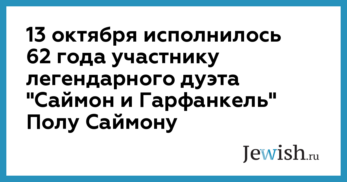 13 октября исполнилось 62 года участнику легендарного дуэта "Саймон и Гарфанкель" Полу Саймону
